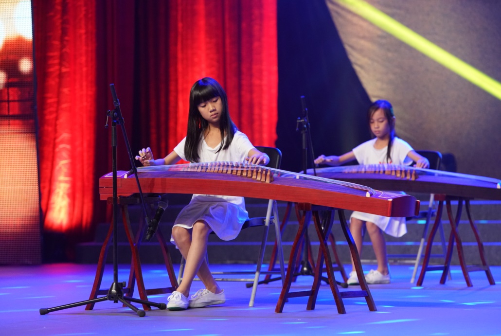 Poor children are playing Chinese zither.
