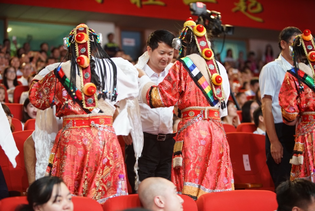 The Tibet Class of the 4th Zhuhai Middle School performs thedance of Good Luck & Happiness.